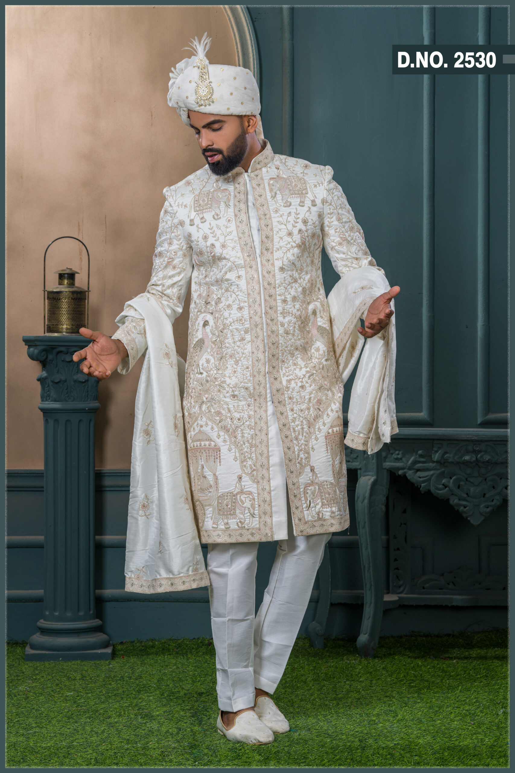 Majestic Ivory Sherwani with Elephant & Peacock Zardozi Embroidery