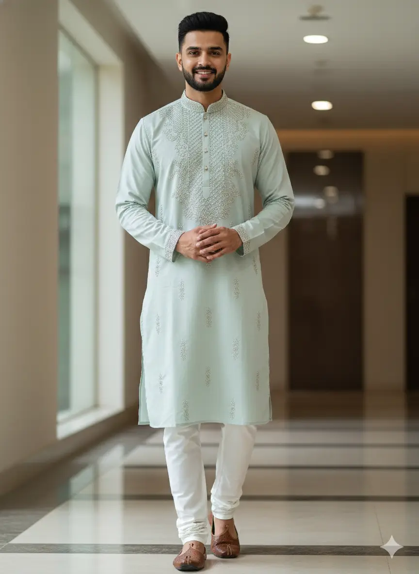 Elegant Pastel Embroidered Kurta Set